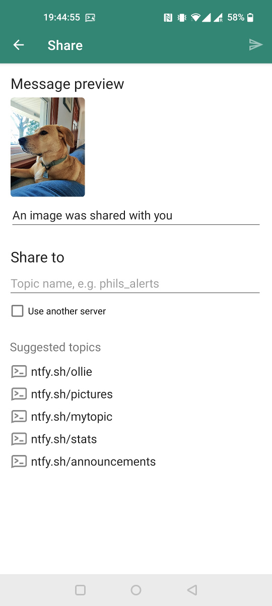 The ntfy Android app supports deep linking directly to topics. This is useful when integrating with automation apps such as MacroDroid or Tasker, or to simply directly link to a topic from a mobile website.